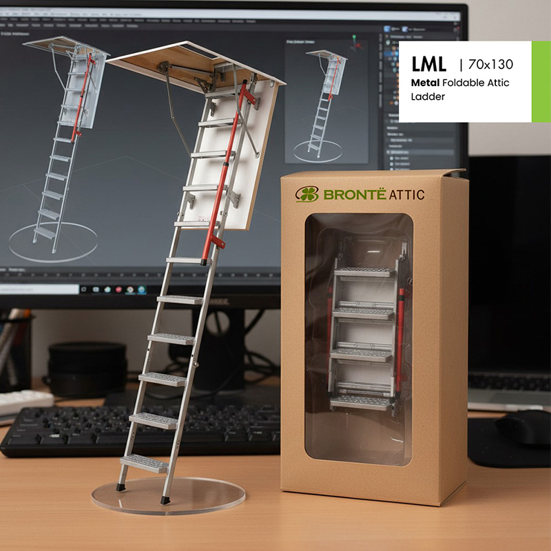 LML is a durable metal foldable attic ladder equipped with an unloading mechanism for smooth, one-rod operation. The finishing slats and easy installations angles integrated with steel supporting frame, simplify and accelerate installation of the attic ladder in the ceiling. It allows length adjustment of the last ladder section, it is possible to adapt to the room height without cutting. Anti-slip profile of the wide threads(13m) significantly improve attic ladder usage protecting from accidental foot slipping. Additional step in the box ensures convenience to the attic.